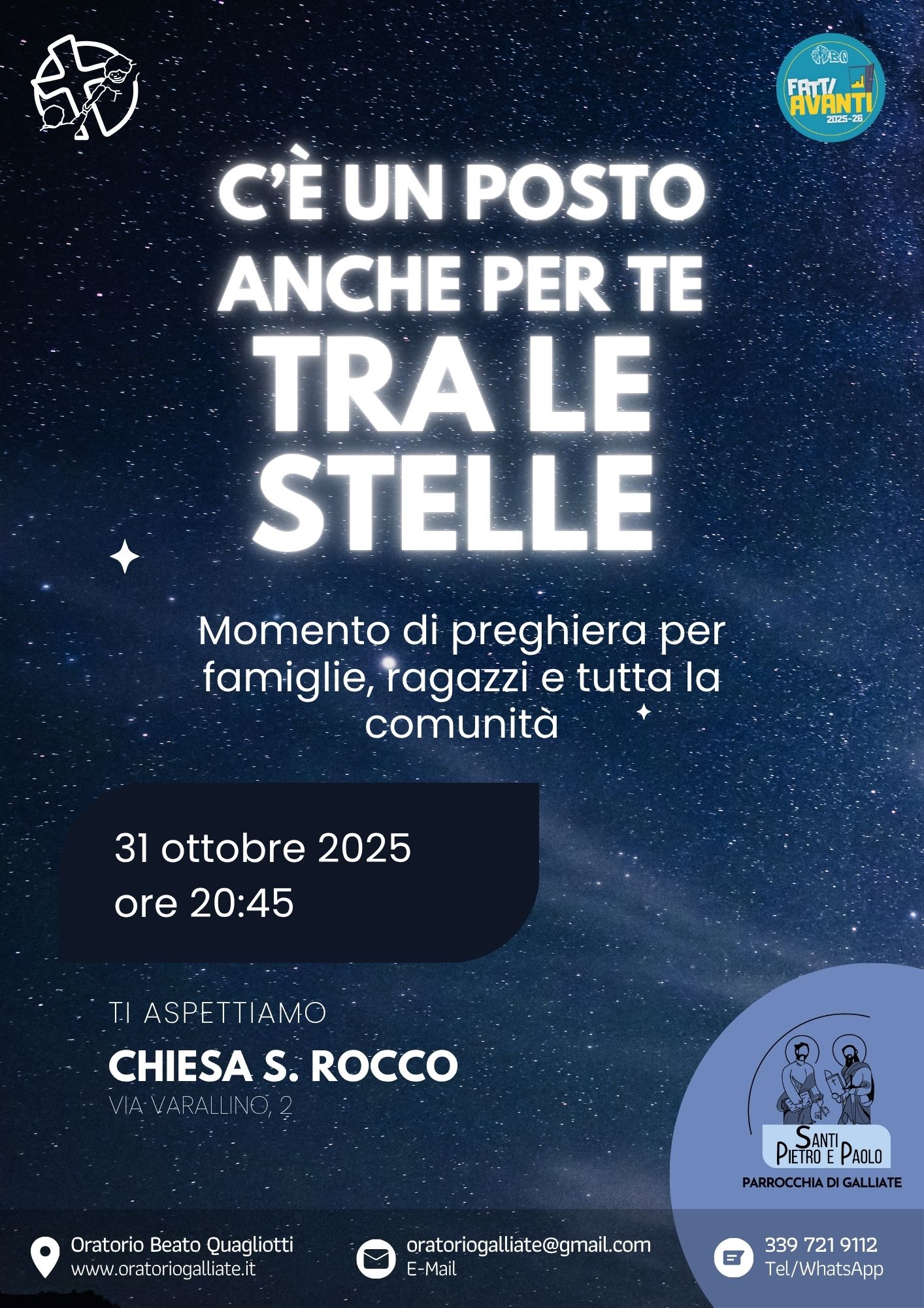 Ti aspettiamo venerdì 31 ottobre alle ore 20:45 nella chiesa di San Rocco per un momento di preghiera dedicato a famiglie, ragazzi e a tutta la comunità.
