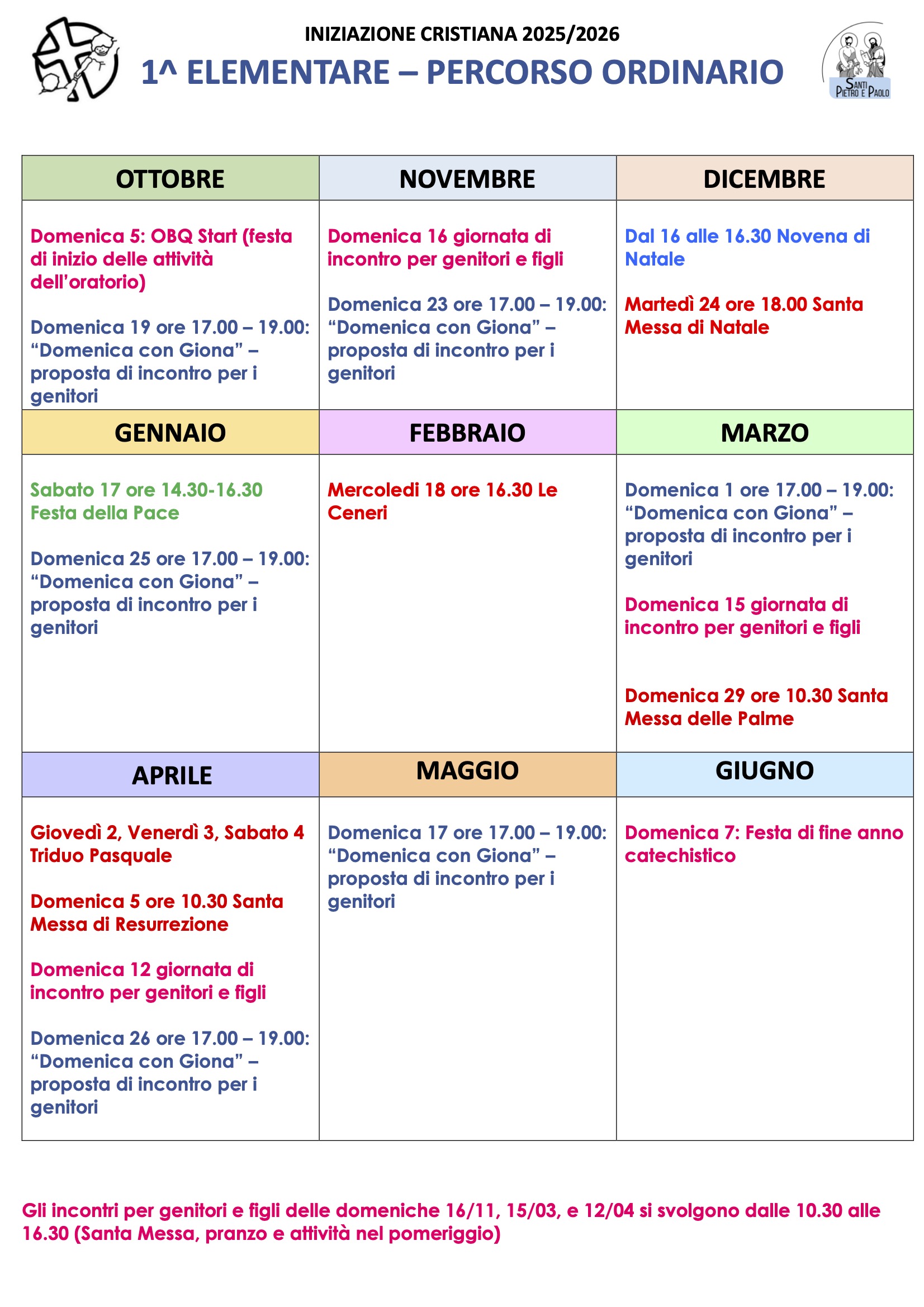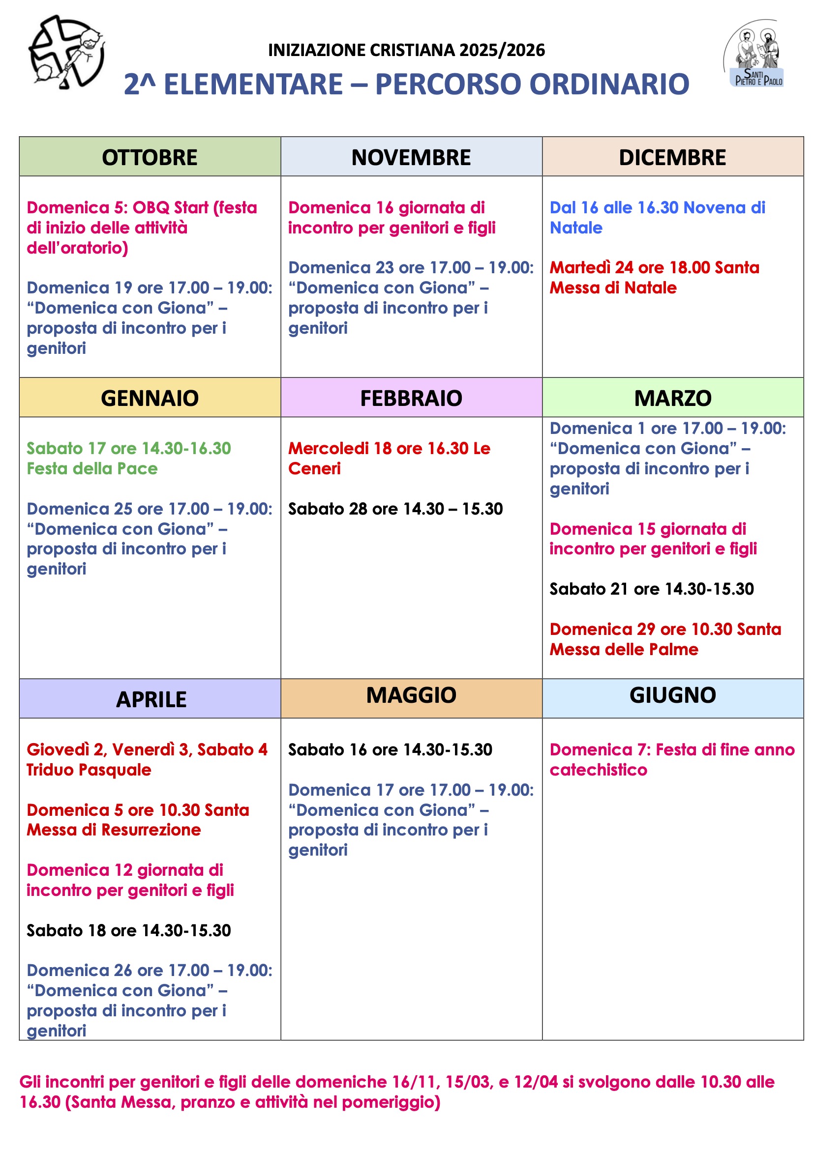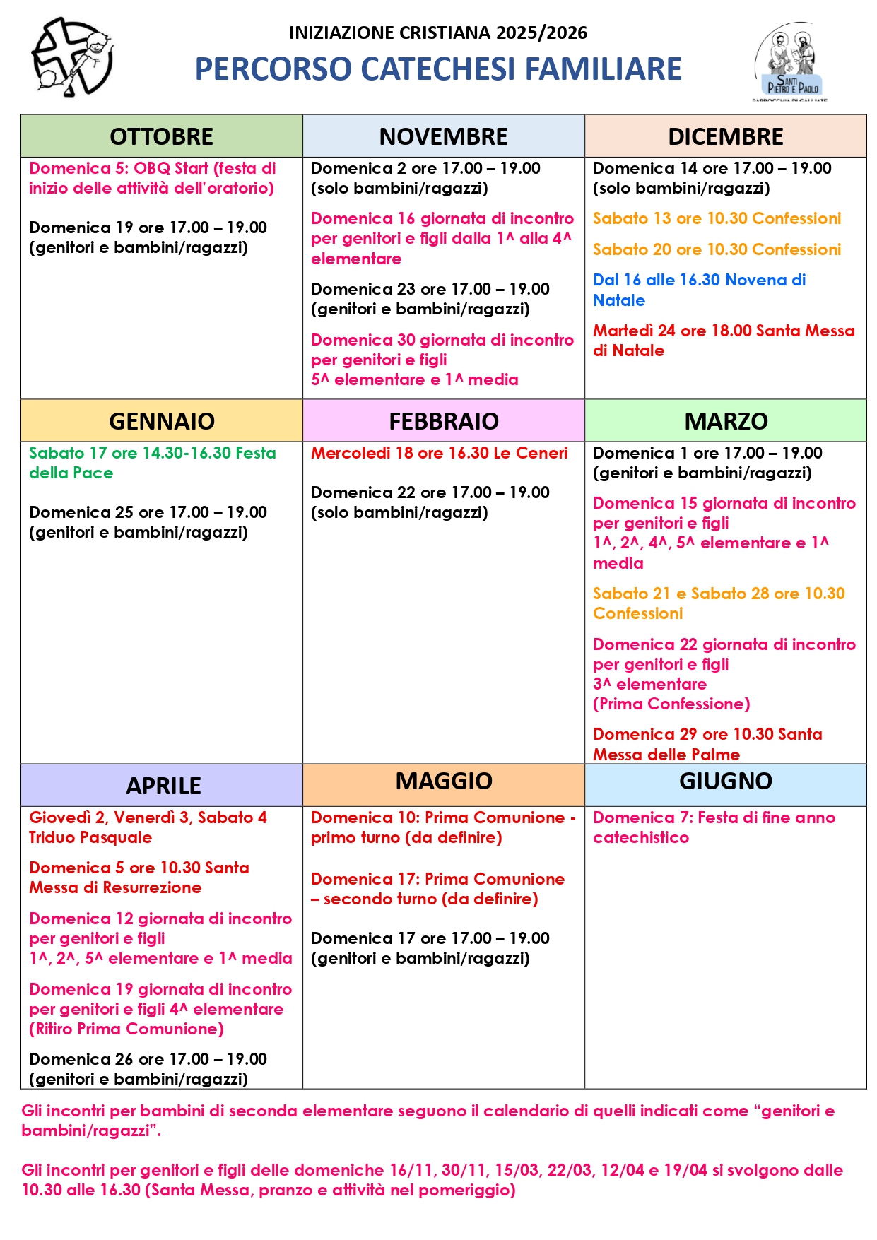 Calendario catechismo 2025 – 26