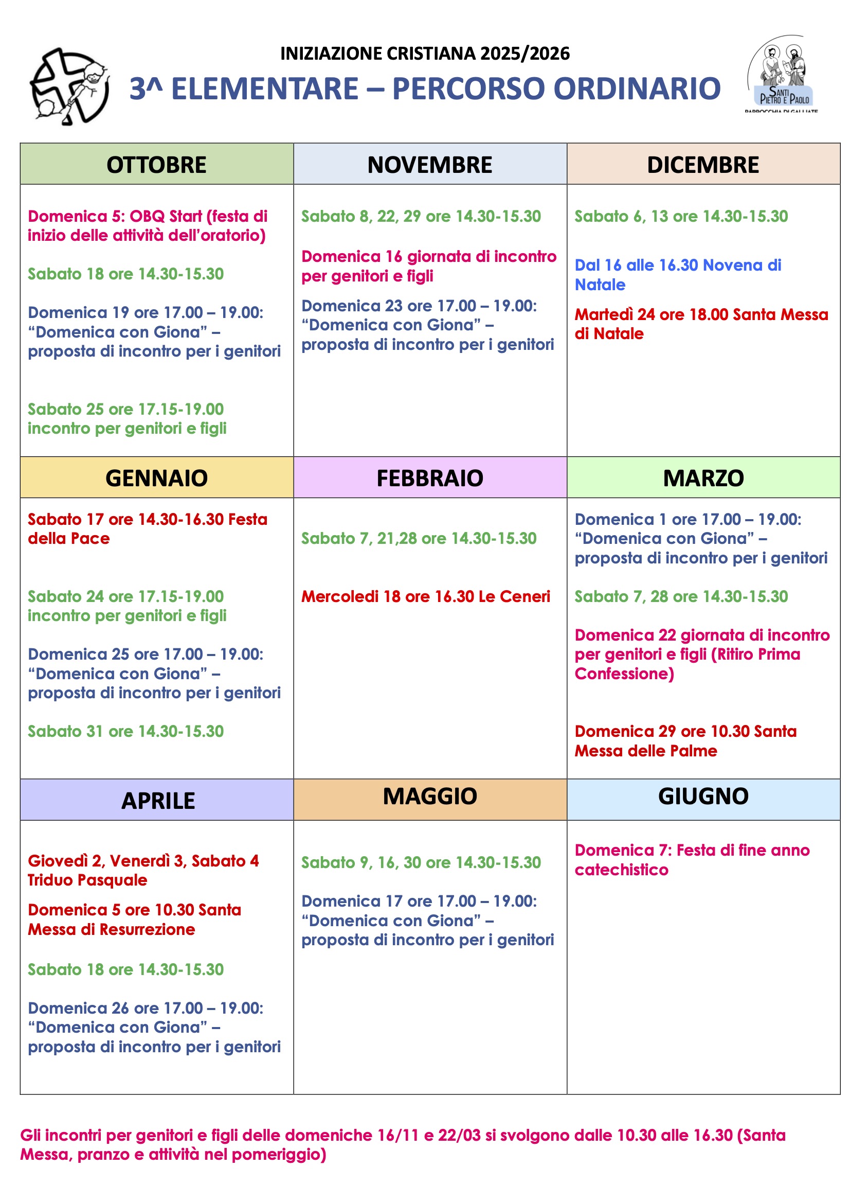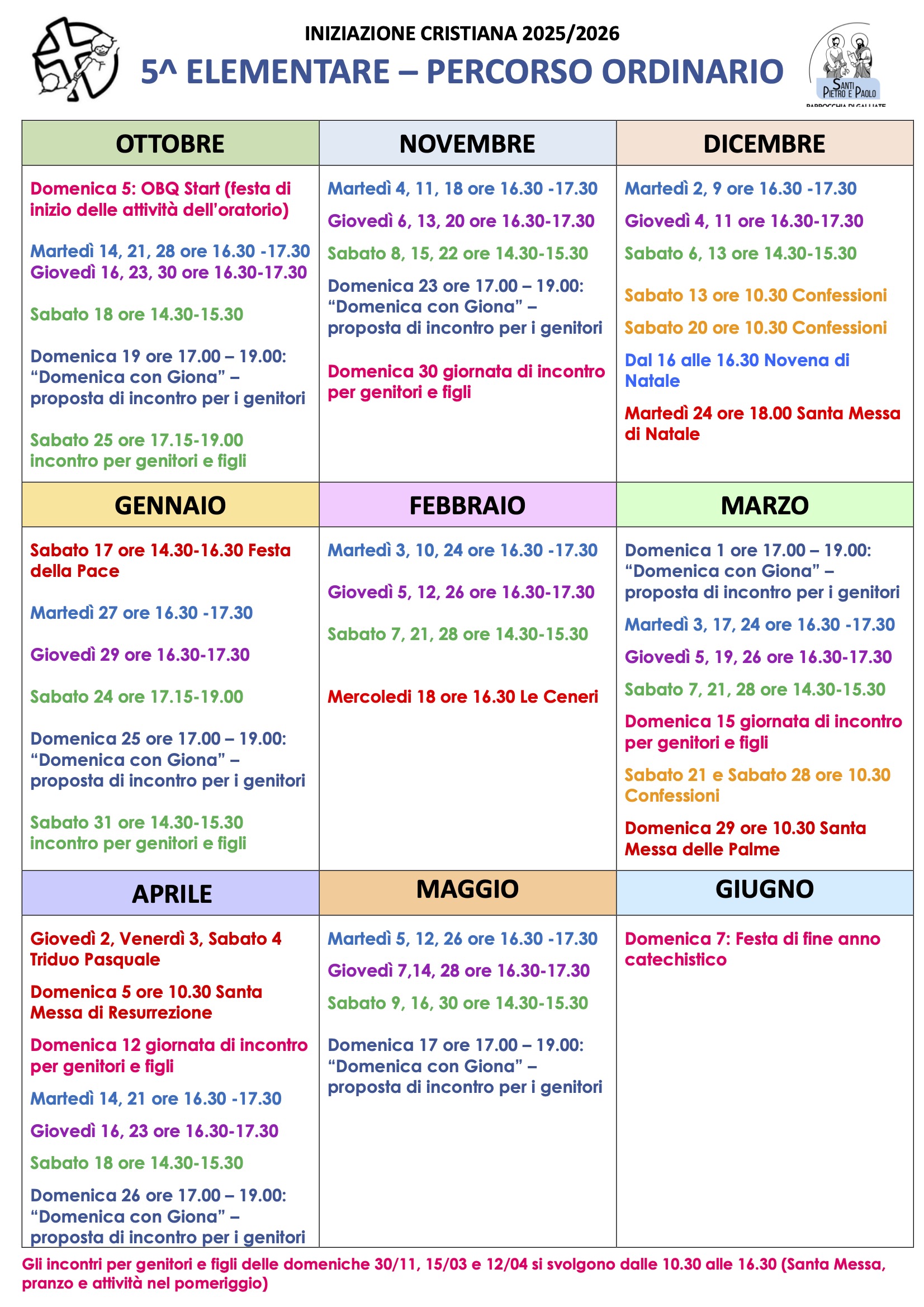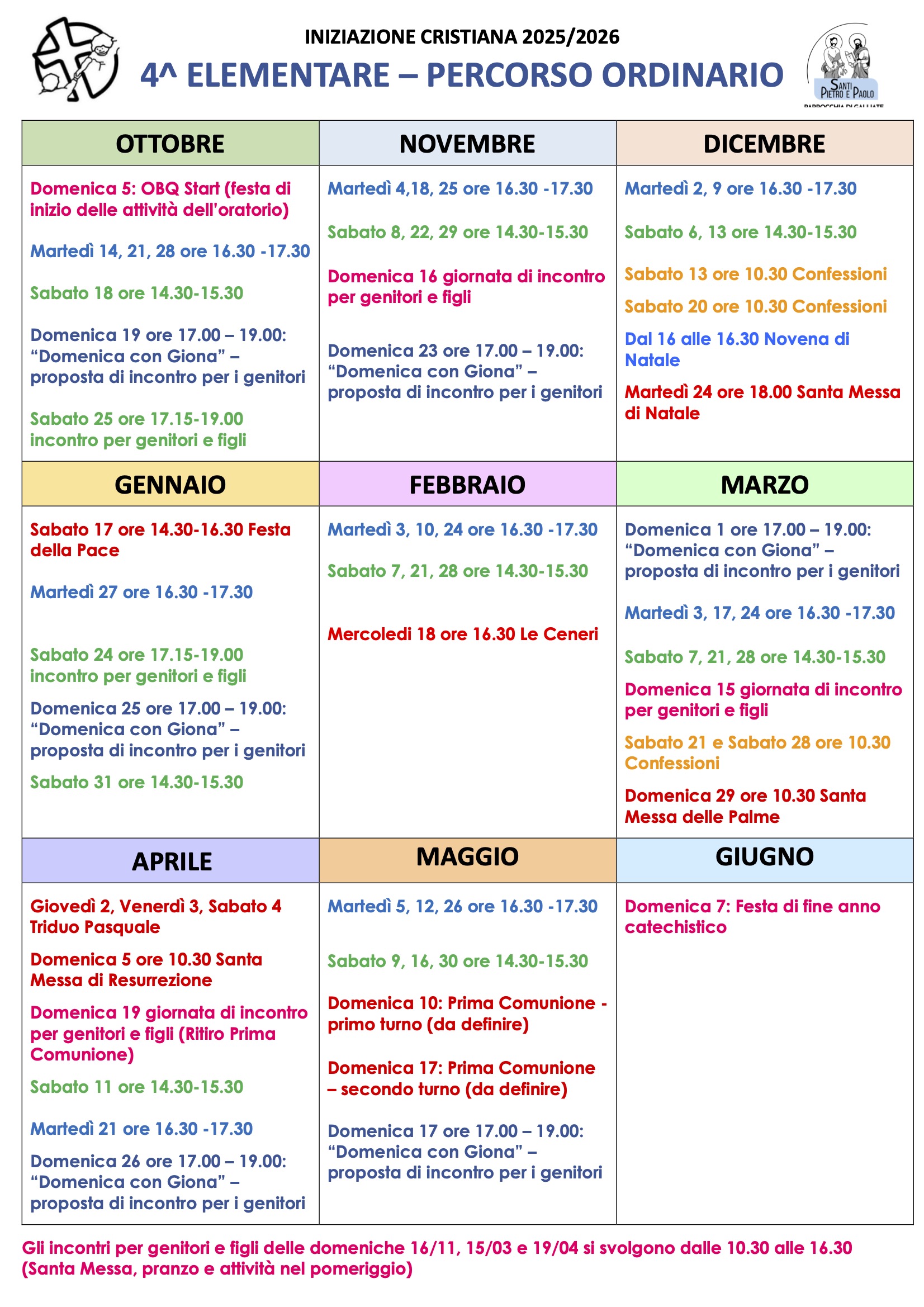 Calendario catechismo 2025 – 26